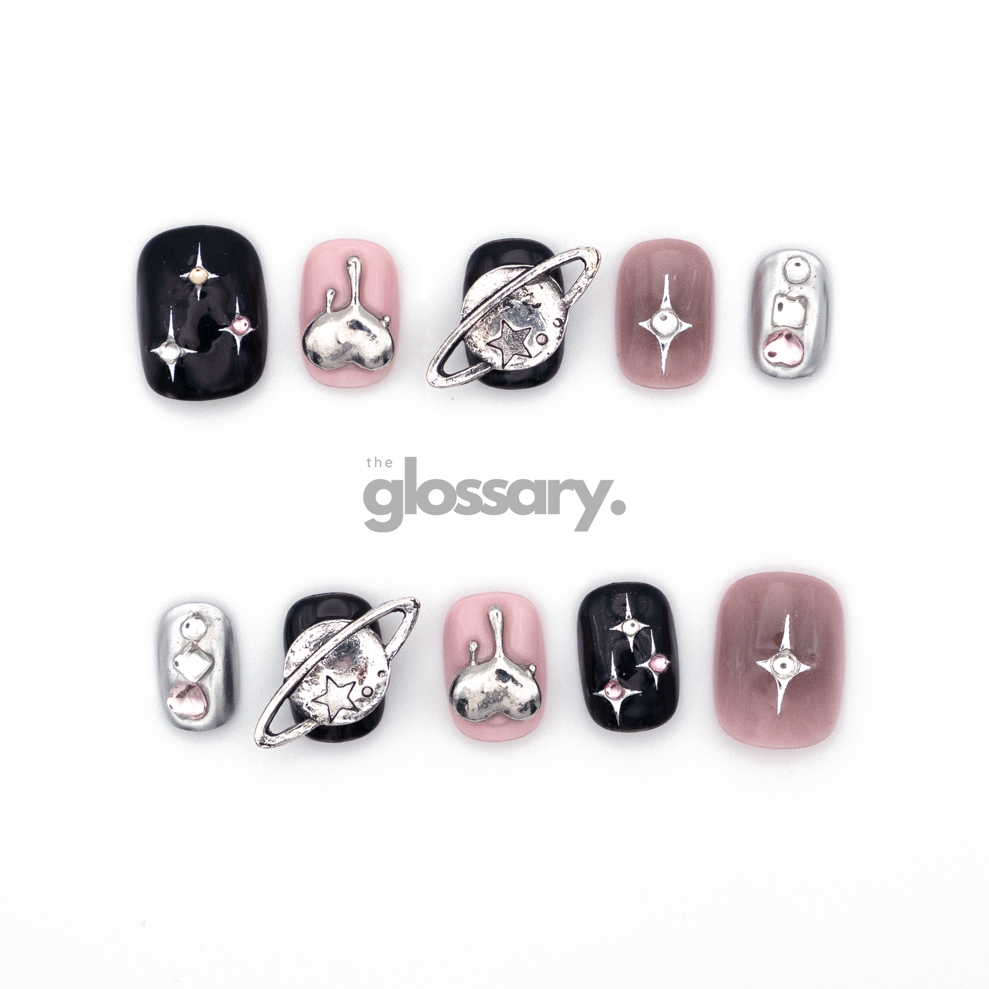 Pink and black with silver ornaments. Would work well in a k-pop video, equally well on the idol’s fingers or as part of the set decoration.